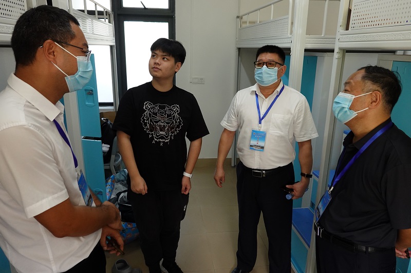 校黨委常委、副校長譚北平(右二)及校區領導在學生宿舍
