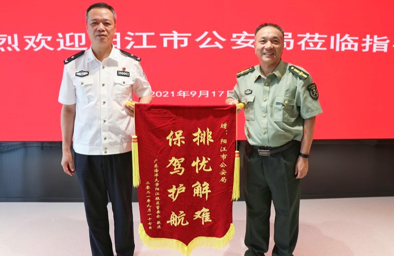 座談會后,寧凌代表陽江校區(qū)向陽江市公安局贈送錦旗。