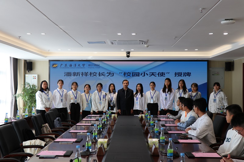 潘新祥為“校園小天使”授予工作證并講話。他強調“校園小天使”是建設“美麗海大、智慧海大、和諧海大、平安海大、健康海大、幸福海大”的重要助手,在學校建設高水平海洋大學中發揮重要作用。陽江校區今年迎來了首屆學生,未來校區發展蘊含著無限發展機遇,小天使們要與學校一起,心往一處想、智往一處謀、勁往一處使,共同營造校區“人人關心學校發展、人人參與學校建設”良好氛圍,為推動校區的跨越式發展,助力學校國內一流國際知名的高水平海洋大學建設跑出自己的“青春加速度”。