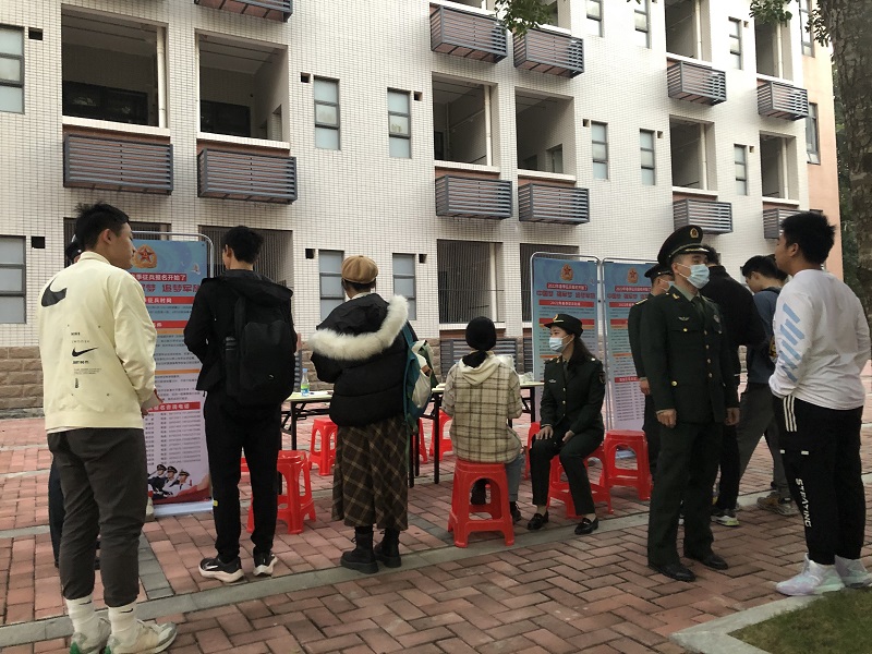 宣傳現場同學們熱情高漲,積極向部隊官兵了解當兵入伍的流程和部隊生活。宣傳活動持續到晚上7點,現場有3位同學進行了征兵意愿登記和網上應征報名,至此,校區已有8位同學完成征兵意愿報名登記,接下來學校會按照征兵辦公室的通知要求,于近期開展初檢初考工作。