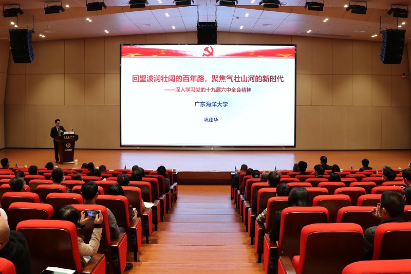 1月5日下午,陽(yáng)江校區(qū)黨委在海納樓113報(bào)告廳舉行學(xué)習(xí)貫徹黨的十九屆六中全會(huì)精神宣講報(bào)告會(huì)。校黨委書記曹俊明,校黨委辦主任、機(jī)關(guān)黨委書記王明對(duì),陽(yáng)江校區(qū)黨委副書記、管委會(huì)常務(wù)副主任周昌仕以及校區(qū)全體教職工、學(xué)生黨員代表共100多人參加。本次報(bào)告會(huì)由學(xué)校黨委理論宣講團(tuán)成員、學(xué)校馬克思主義學(xué)院教授鞏建華主講,陽(yáng)江校區(qū)黨委委員、管委會(huì)副主任陳永強(qiáng)主持。
