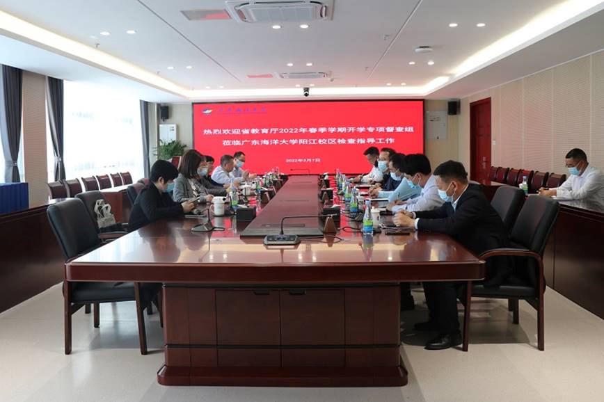 3月7日下午,廣東省教育廳政策法規處一級調研員袁俊率督查組到陽江校區,開展2022年春季學期學校疫情防控工作專項檢查。