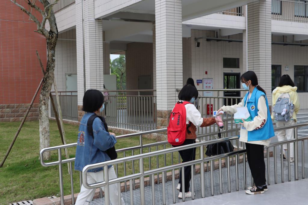在教學樓(慎思樓),疫情防控青年突擊隊每天安排兩批次志愿者值崗,協助物業部門提醒前來上課同學佩戴口罩,筑牢疫情防控第一道防線,從嚴從緊抓好落實校園疫情防控工作。
