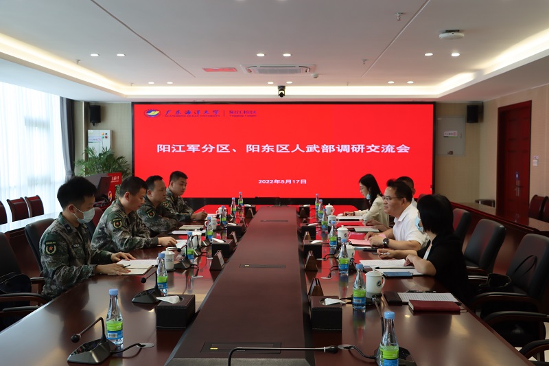 5月17日下午,陽江軍分區動員處處長常治濤、陽東區人武部政委王驍棟帶隊到陽江校區進行調研,在海納樓712會議室進行座談交流,會議由陽江校區黨委委員、管委會副主任陳永強主持,學生事務部全體人員參加了會議。