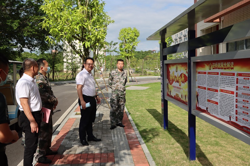 會后,軍分區、人武部一行實地走訪查看了校區的征兵宣傳內容,雙方從宣傳欄選址、擴大宣傳受眾面和提高宣傳質效等方面進行了探討與交流。