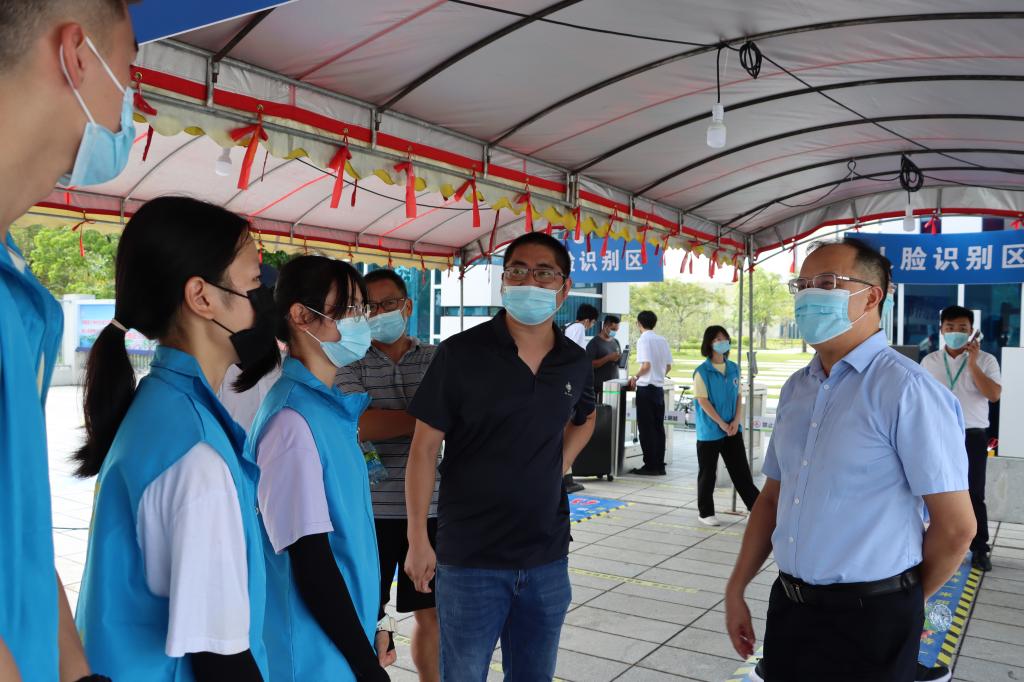 校區黨委副書記、管委會常務副主任周昌仕,管委會副主任張界新深入現場督導返校工作,代表學校慰問奮戰在一線的廣大師生員工、志愿者,向他們辛勤工作表示感謝,為他們在烈日炎炎中仍然恪盡職守、服務學生的精神點贊。