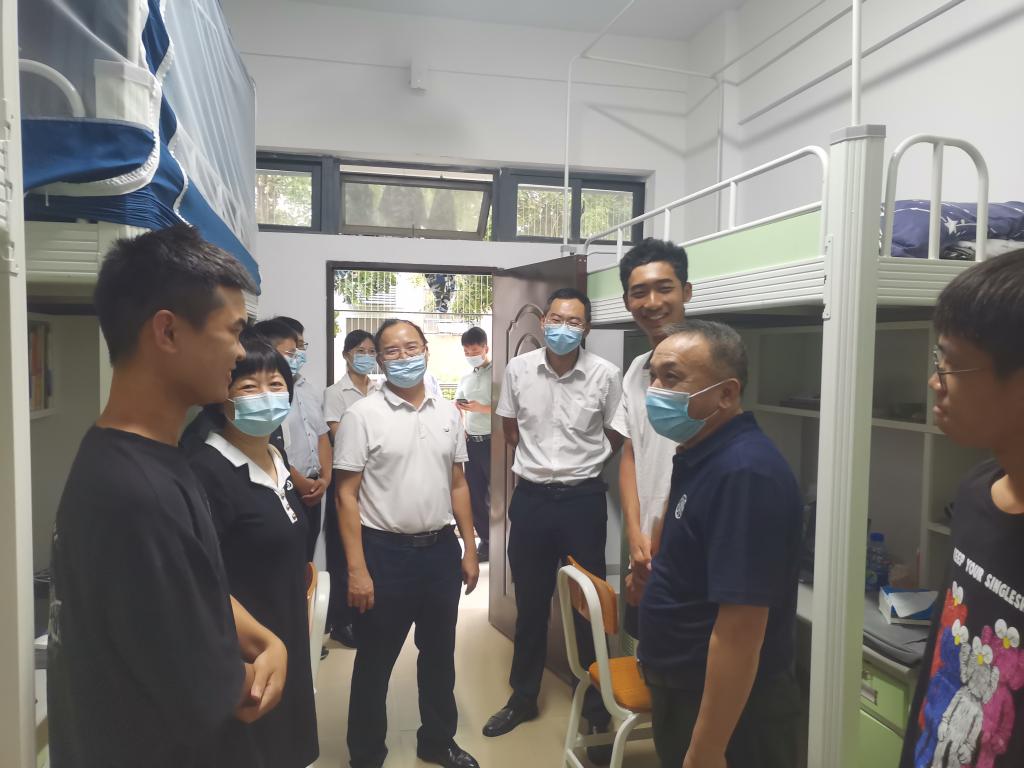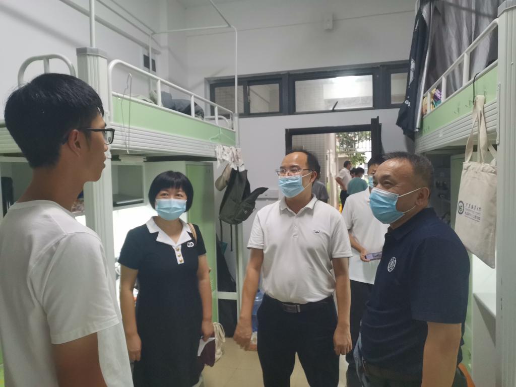 為了解新生在校情況,幫助新生盡快適應大學生活。9月29日下午,學校黨委常委、副校長、校區黨委書記、管委會主任寧凌,校區黨委副書記、管委會常務副主任周昌仕在綜合事務部、組織人事部、學生事務部、后勤保障部負責人的陪同下,深入學生宿舍看望慰問新生。