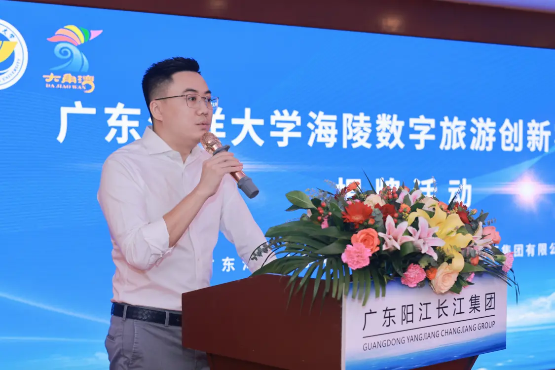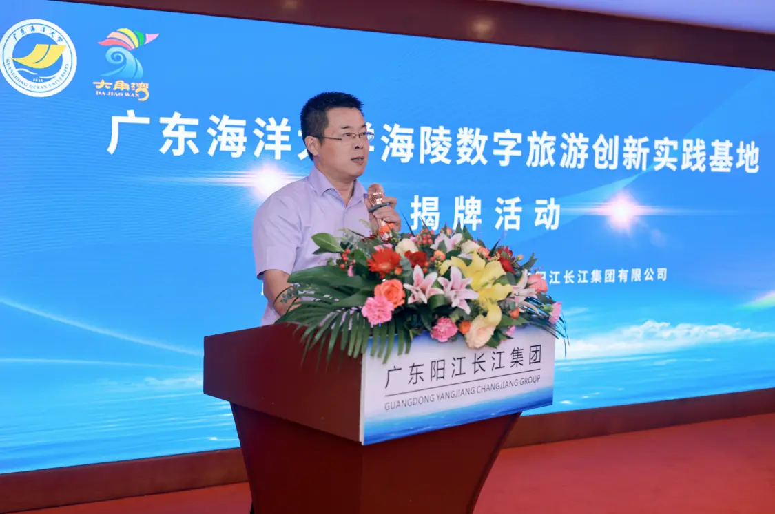 廣東陽江長江集團總經理蘇鴻坤在致辭中指出,廣東陽江長江集團建立30年來,與國家改革發展同步,企業經歷了量變到質變的過程,實現了集團式跨越發展,如今經營業務遍布粵港澳三地、涉足餐飲與旅游等多個領域,其中長江國際酒店和海陵島大角灣5A景區更是成為了陽江旅游行業的龍頭企業。隨著海陵島大角灣5A濱海旅游區進入數字經濟與數字旅游產業發展的新時代,希望通過與廣東海洋大學數字旅游研究中心的緊密合作,基于廣東海洋大學海陵數字旅游創新實踐基地,緊緊圍繞旅游景區數字化運營、數字景區旅游服務創新與實踐等進行深入地共建與合作,全面提升海陵島大角灣5A景區的核心競爭力,實現景區的可持續與高質量發展。