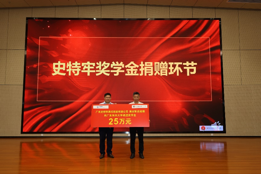 陳揚枝院長作為院方代表接受熊業軍總經理的獎學金捐贈,表示陽江校區與史特牢同期開始建設以來,校企緊密合作,雙方在實習基地建設、學生實習實踐、科研攻關等方面達成共識,攜手共進求發展,他對史特牢的慷慨解囊表示高度的贊揚。