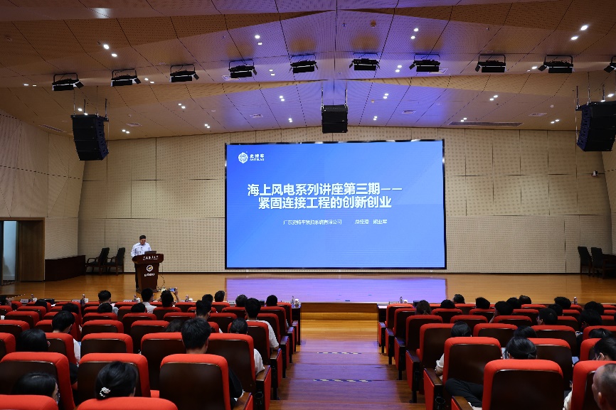 4月24日下午,機械與能源工程學院黨建共建暨史特牢海上風電獎學金捐贈和海上風電講座系列活動在陽江校區海納樓113報告廳舉行。校區黨委副書記丁永成、廣東史特牢緊扣系統有限公司(以下簡稱史特牢)總經理熊業軍出席并致辭,機械與能源工程學院陳揚枝院長接受捐贈并作總結發言。史特牢黨支部書記吳慧、機械與能源工程學院黨總支書記周榮偉、校區學生事務部翁江峰、資產財務部王春強、教學科研部白浚宇及機械與能源工程學院師生共200余人參加了活動。