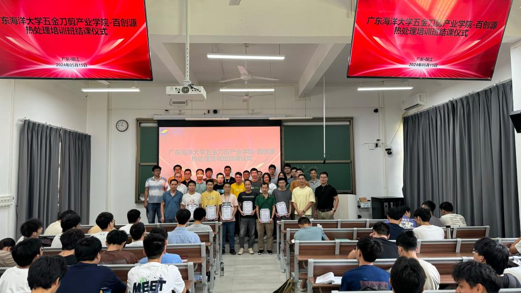 5月15日上午,材料科學與工程學院在陽江校區慎思樓A102舉辦“五金刀剪產業學院-百創源熱處理培訓班”結課儀式。學院院長師文慶出席并發表講話,郭福建老師主持活動。