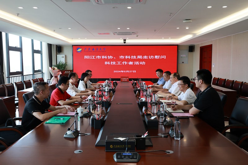 5月27日下午,陽江市科協主席姜樹勤,市科技局黨組書記、局長張耀一行到校區開展座談交流。學校黨委常委、副校長周昌仕,校區黨委副書記丁永成,校區管理辦公室副主任張家榮、白浚宇,陽江研究院副院長羅東輝參加活動。