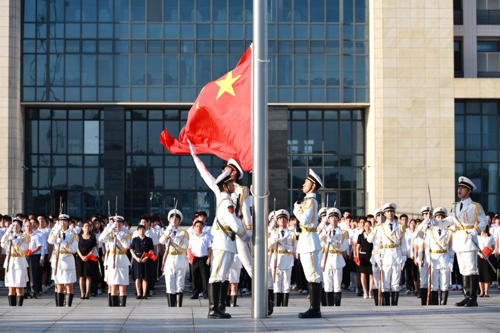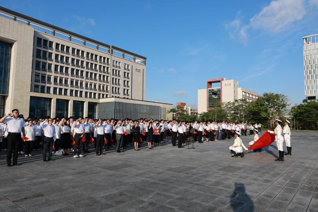 為慶祝中國共產黨成立103周年,教育引導廣大黨員師生堅定理想信念,弘揚愛國主義精神,7月1日清晨,陽江校區在錦繡廣場舉行“七一”升旗活動。校區黨委副書記丁永成出席活動并講話。校區管理辦公室副主任、綜合事務部部長張家榮主持活動。校區領導、校區各單位黨政負責人、教職工代表、校區學生代表共1100余人參加活動。