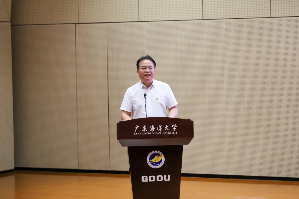 在出征儀式上,孫學(xué)甫宣讀2024年社會(huì)實(shí)踐團(tuán)隊(duì)立項(xiàng)名單及臨時(shí)團(tuán)支部組成名單。接著,各社會(huì)實(shí)踐團(tuán)隊(duì)臨時(shí)團(tuán)支部書記現(xiàn)場重溫入團(tuán)誓詞。隨后,陳永強(qiáng)作動(dòng)員講話,他強(qiáng)調(diào),同學(xué)們一要胸懷“國之大者”,成為時(shí)代使命的擔(dān)當(dāng)者;二要心系“民之所需”,成為鄉(xiāng)村振興的實(shí)踐者;三要踐行“安全第一”,確保實(shí)踐活動(dòng)的順利進(jìn)行。最后,陳永強(qiáng)、孫學(xué)甫分別為廣東海洋大學(xué)2024年國家資助和助學(xué)貸款政策下鄉(xiāng)行團(tuán)隊(duì)代表、“百千萬工程”突擊隊(duì)校院級(jí)團(tuán)隊(duì)代表授旗。