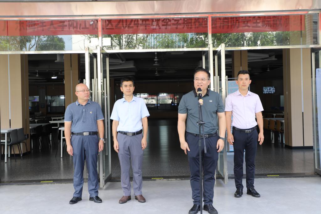 為增強校園消防安全意識,提高師生自防自救能力,陽江校區(qū)于9月19日下午在學生公寓海智樓南廣場舉行了2024年秋季學期校園消防安全疏散演練活動。校區(qū)黨委副書記陳永強出席并發(fā)表總結講話,后勤保障部、學生事務部、各學院書記及輔導員、2024級全體新生等共約900余人參加了活動等。