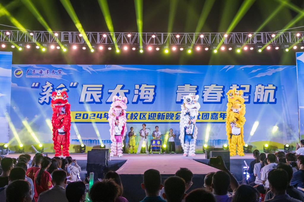 本次活動包含14個晚會節目和33個攤位集章游戲。隨著夜色逐漸彌漫,舞臺燈光閃爍,各種形式的節目精彩紛呈,有悠揚的曲調、激昂的詩朗誦、舞動的身姿和出彩的模特秀等,為師生們帶來了一場視聽盛宴。樂隊和醒獅的表演展現出同學們的自信與熱情,他們在舞臺上盡情綻放,每一個轉身、每一次跳躍,都是對青春最熱烈的詮釋。校區輔導員創作的詩詞朗誦《又一片海洋》生動地描繪了新一代海大人以開拓進取、勇于拼搏的精神在陽江這片熱土上創造了一個充滿活力和希望的“新海洋”,引起現場觀眾的共鳴,點燃了現場氣氛。晚會在合唱《找自己》的激昂歌聲和美好愿景中圓滿落幕。