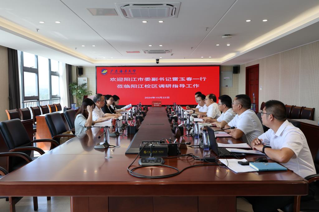 10月22日上午,陽江市委副書記雷玉春率團市委書記劉粉英一行蒞臨陽江校區(qū)調(diào)研。學校黨委常委、副校長、陽江校區(qū)黨委書記、管理辦公室主任周昌仕,陽江校區(qū)黨委副書記丁永成、陳永強及相關單位(部門)負責人參加座談會。會議由周昌仕主持。