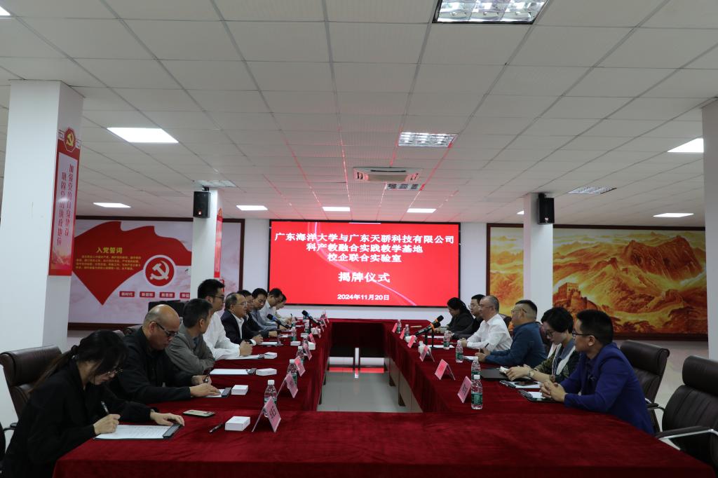 11月20日下午,材料科學與工程學院與廣東天驕科技有限公司舉行“廣東海洋大學-廣東天驕科技有限公司共建科產教融合實踐教學基地與校企聯合實驗室”揭牌儀式。學校黨委常委、副校長、陽江校區黨委書記、管理辦公室主任周昌仕出席儀式并揭牌。陽江校區黨委副書記丁永成,材料科學與工程學院黨總支書記李毅,學院院長師文慶,教學科研部部長白浚宇,資產財務部部長郭恩松參加活動。