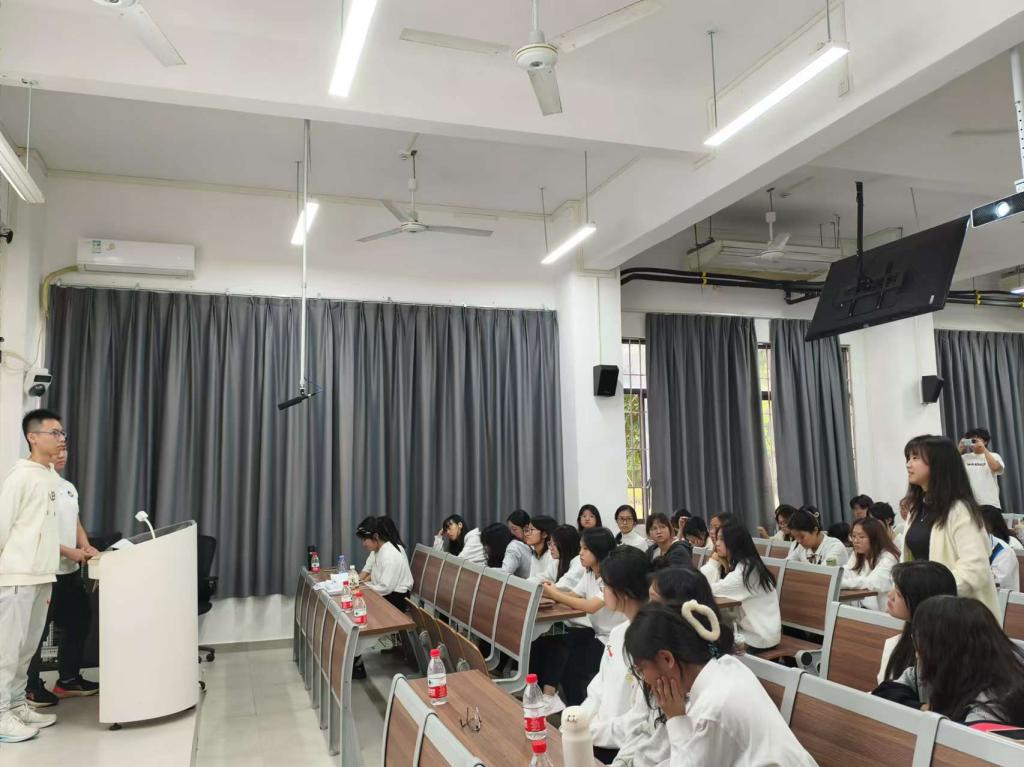 分享會上,兩支團隊的成員不僅分享了他們在“挑戰杯”競賽中的親身經歷和寶貴經驗,還以參賽作品作為分享案例進行細致解讀,并對參賽過程中的注意事項提供了實用的建議和指導。在互動問答環節,同學們積極提問,團隊成員們結合豐富的實戰經驗對同學們的疑問進行了耐心解答,現場氣氛活躍,交流深入。
