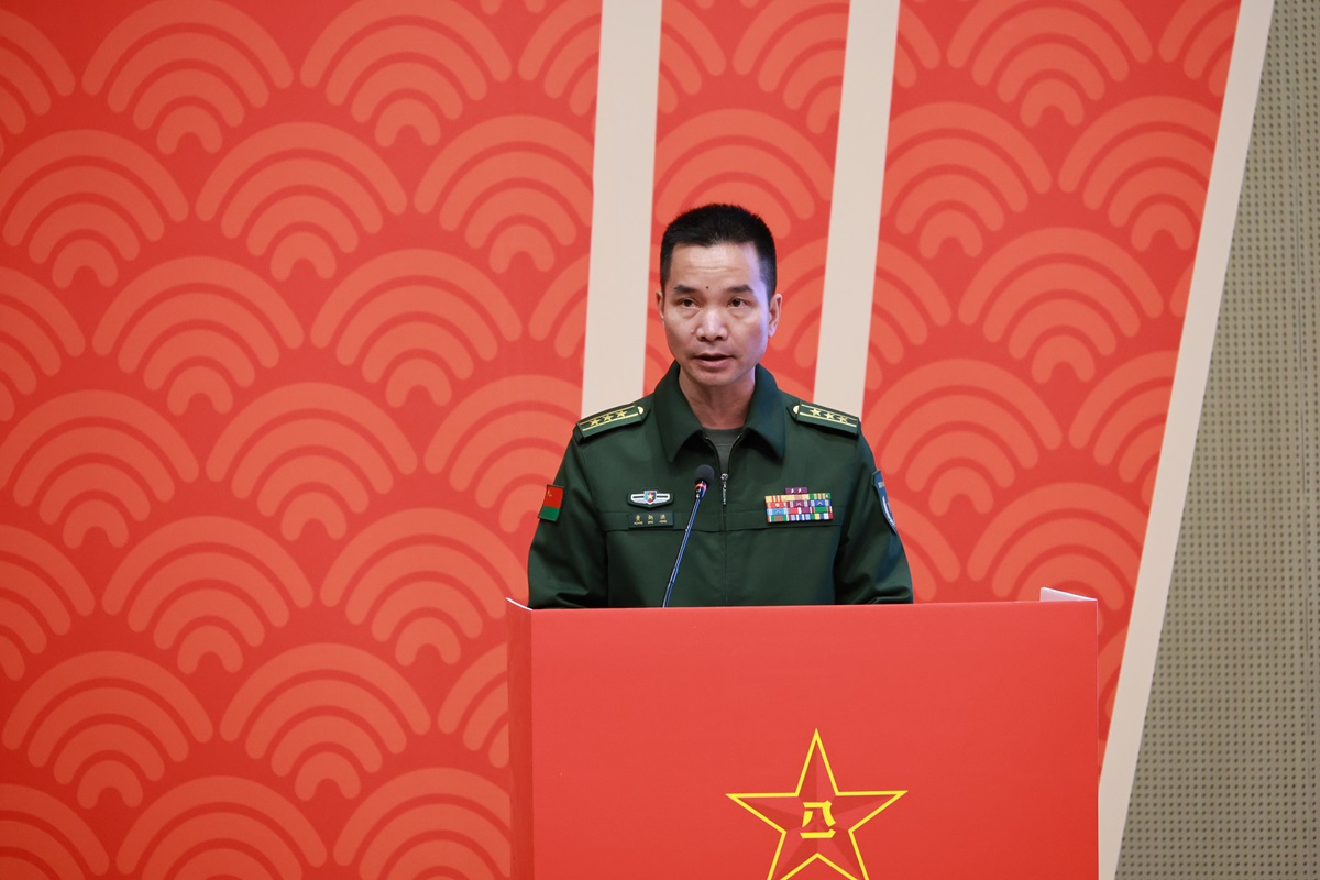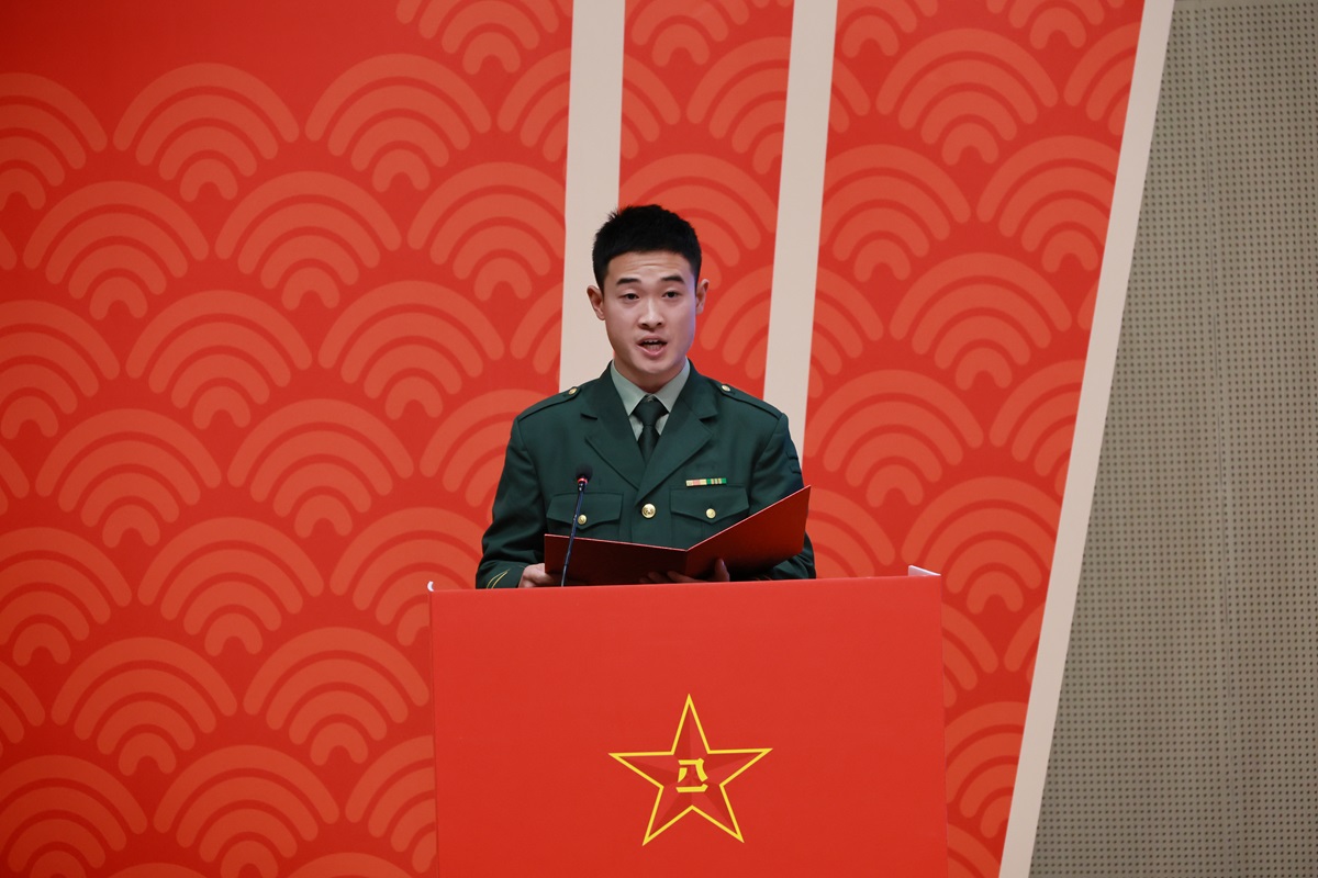 商學院擬報名入伍2021級學生代表陳旖旎在儀式上發言:“軍隊,是國家的堅強后盾,它守護著每一寸國土,捍衛著每一個公民的安寧,而投身軍旅,正是我們每一位有志青年的神圣使命和光榮職責。”退役復學大學生卜鑫彬現場分享了自己的軍旅生活:“戰友親如兄弟,每當遭遇挫折與困難時,他們總會伸出援手,給予我幫助與鼓勵,這份真摯的戰友情,將是我一生的財富。”兩位現役軍人代表現場回顧軍旅的崢嶸歲月,暢談思想感悟,分享成長收獲,鼓勵在座學生積極投身到國防建設事業中。