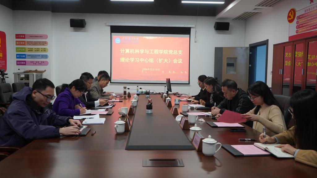 12月19日,計算機科學與工程學院黨總支理論學習中心組(擴大)會議在厚為樓904會議室召開。校區黨委副書記丁永成,校區黨委委員、組織人事部部長劉波列席旁聽。會議由學院黨總支書記劉利群主持。