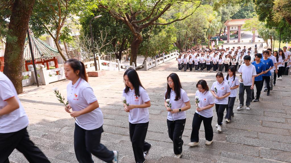 為深化愛國主義教育,弘揚英烈精神,陽江校區團委于4月2日下午在陽江市北山烈士陵園組織開展行走的思政課——“清明祭英烈”主題系列活動。校區團學骨干、“青馬工程”“揚帆工程”培訓班學員、思政小助理陽江分隊、“講好南路革命故事”第十二小分隊、陽江校區易班、國防與軍事協會成員等260余名師生代表參加活動。