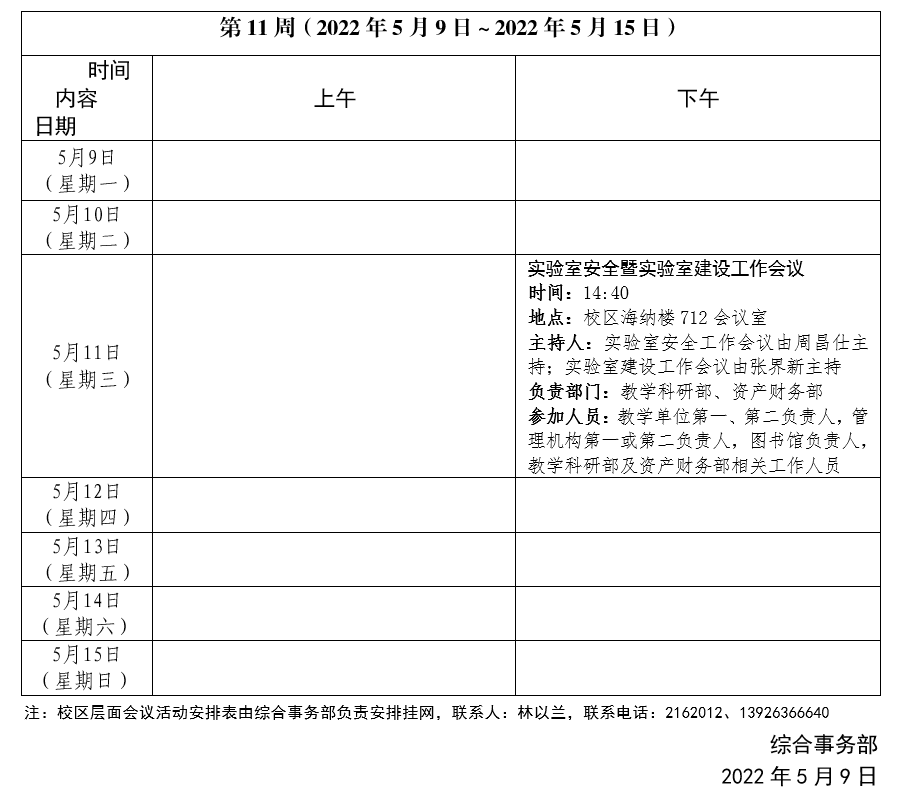 2021~2022學年第二學期第11周會議活動安排表