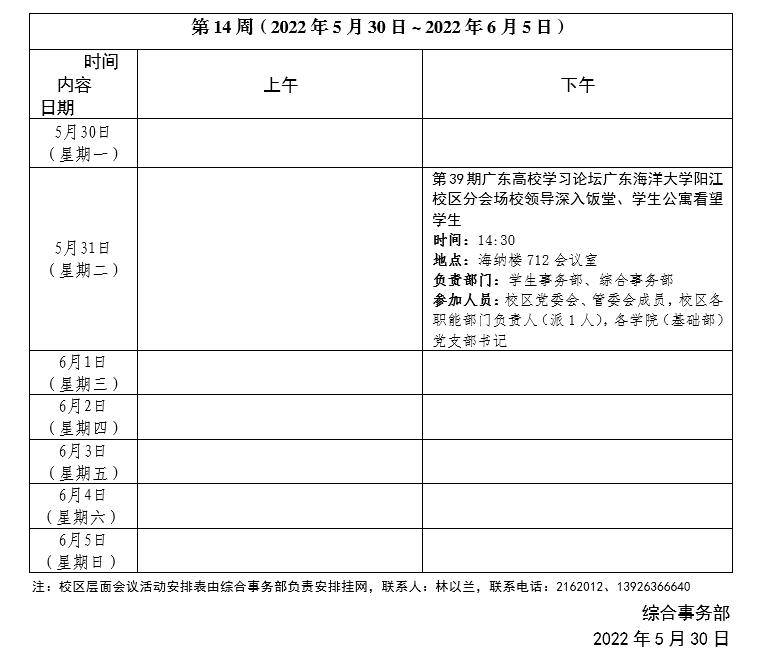 2021~2022學年第二學期第14周會議活動安排表
