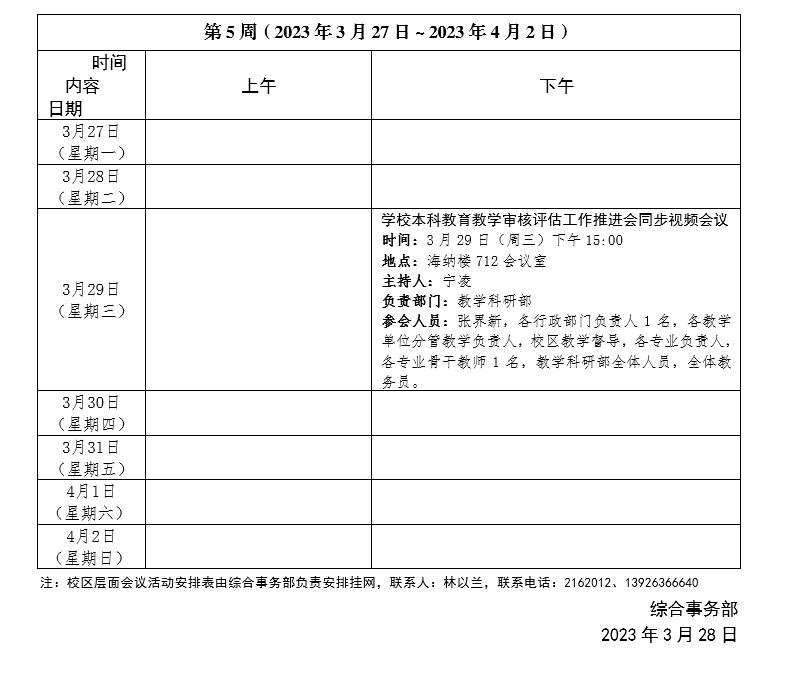 2022~2023學年第二學期第05周會議活動安排表
