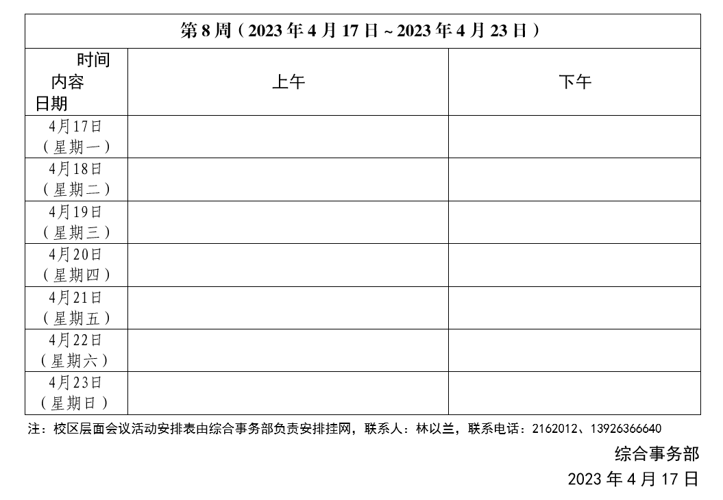 2022~2?023學年第二學期第08周會議活動安排表
