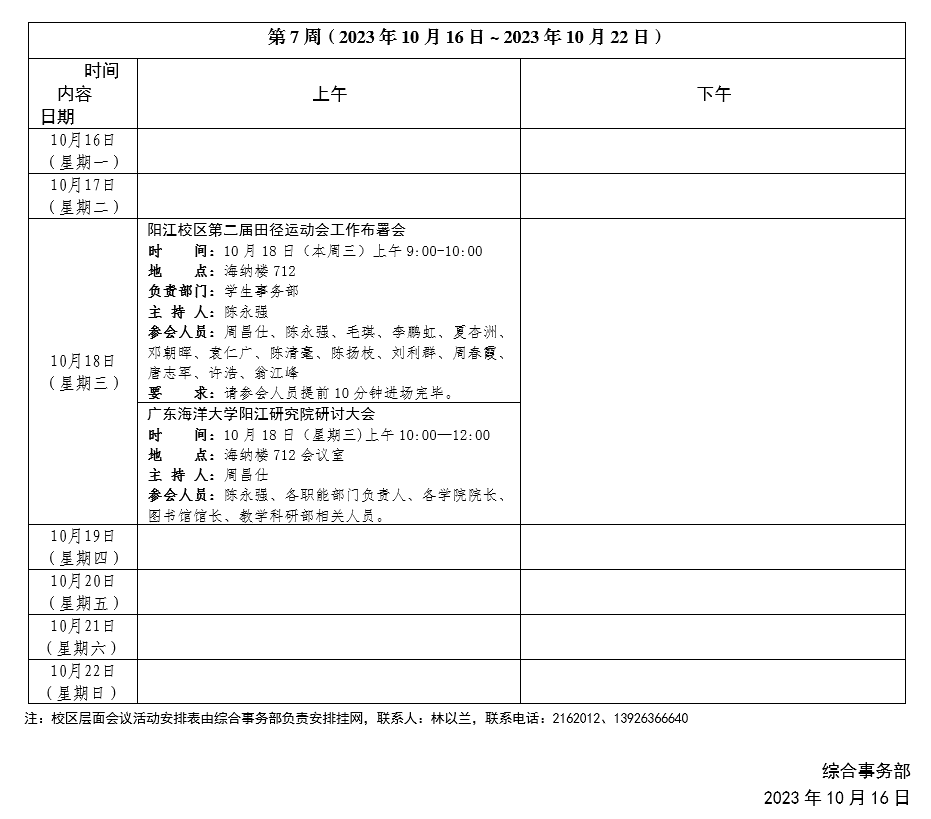 2023~2024學年第一學期第7周會議活動安排表