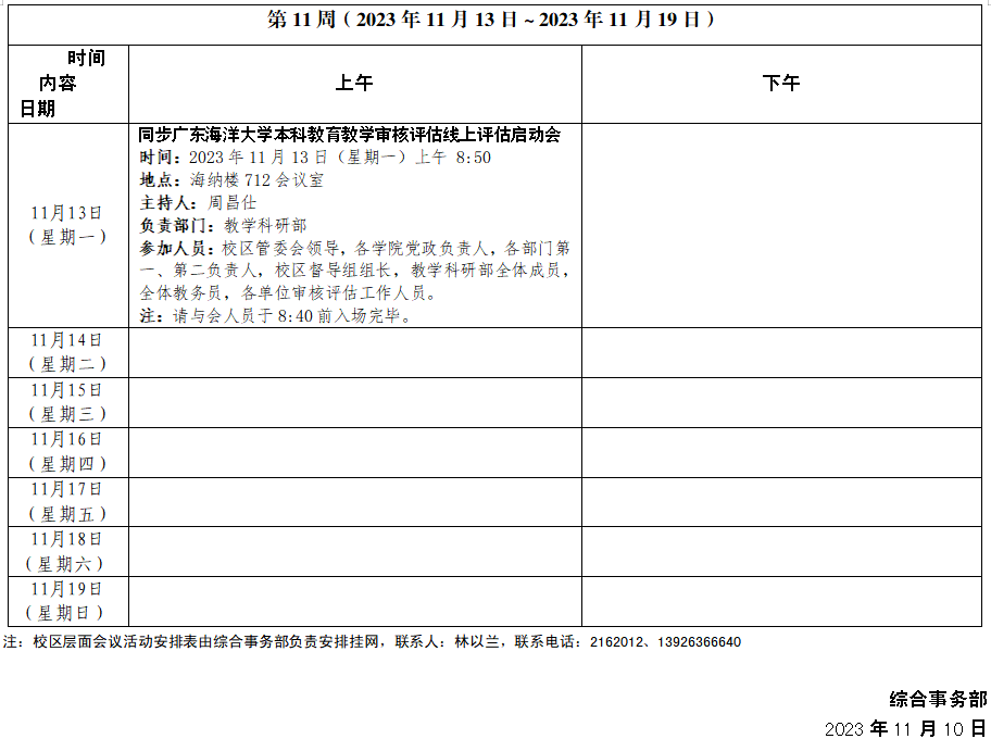2023~2024學年第一學期第11周會議活動安排表