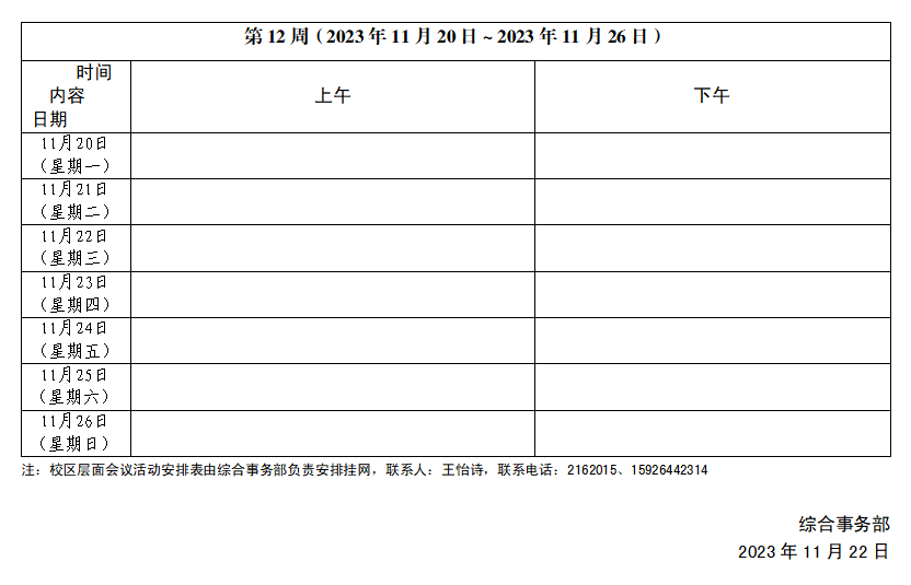 2023~2024學年第一學期第12周會議活動安排表