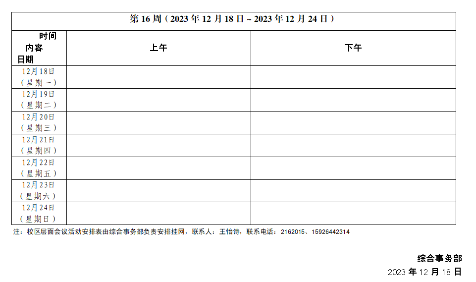 2023~2024學年第一學期第16周會議活動安排表
