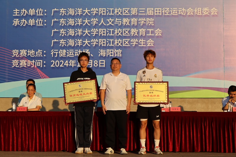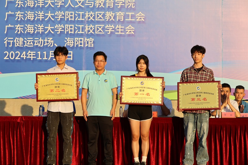 人文與教育學院、機械與能源工程學院、計算機科學與工程學院、材料科學與工程學院分別獲得教工組團體總分第一、二、三、四名。商學院、食品科學與工程學院、計算機科學與工程學院分別獲得學生組團體總分第一、二、三名。機械與能源工程學院學生組團體獲得“體育道德風尚獎”,材料科學與工程學院學生組團體獲得“優秀組織獎”。丁永成、人文與教育學院院長張新美為獲獎代表隊頒獎。