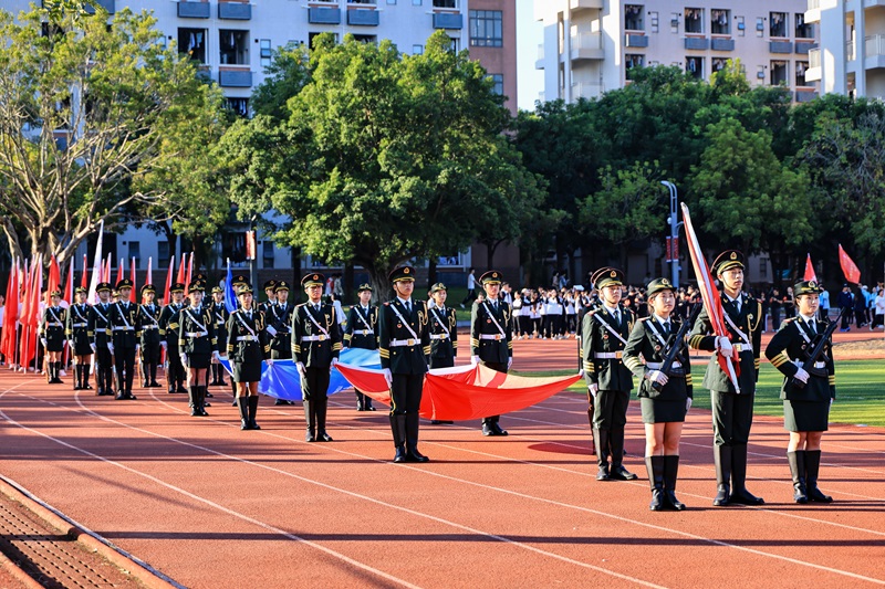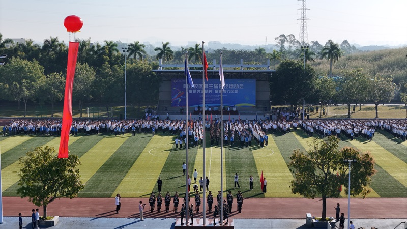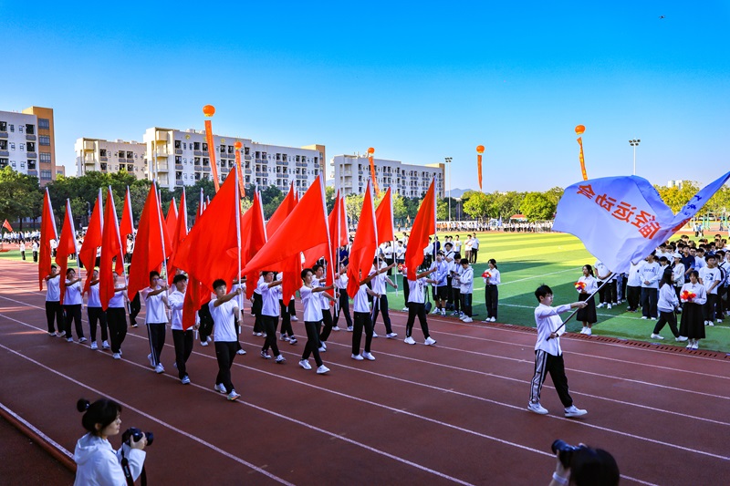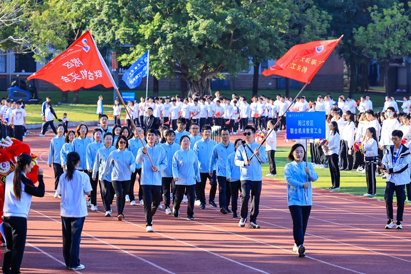 學校黨委常委、副校長,陽江校區黨委書記、管理辦公室主任、第三屆田徑運動會組委會主任周昌仕出席運動會開幕式并致辭。校區黨委副書記、組委會副主任丁永成主持開幕式。在全體師生的共同見證下,國旗隊、校旗隊、紅旗隊、裁判員、運動員們身著整齊的隊服,精神抖擻地步入會場。伴隨著激昂的進行曲,各方陣依次喊著響亮的口號通過主席臺,展現了各自的獨特風采。