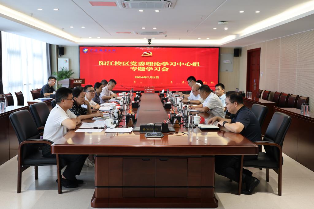 為深入開展黨紀(jì)學(xué)習(xí)教育,根據(jù)學(xué)校慶祝建黨103周年工作安排,7月2日下午,陽江校區(qū)黨委理論學(xué)習(xí)中心組召開《中國共產(chǎn)黨紀(jì)律處分條例》專題學(xué)習(xí)暨黨紀(jì)學(xué)習(xí)教育讀書班集中研討會(huì),認(rèn)真學(xué)習(xí)領(lǐng)會(huì)習(xí)近平總書記關(guān)于全面加強(qiáng)黨的紀(jì)律建設(shè)的重要論述,深入學(xué)習(xí)“六項(xiàng)紀(jì)律”,準(zhǔn)確掌握“六項(xiàng)紀(jì)律”主旨要義和規(guī)定要求,深化對《條例》的認(rèn)識和理解,結(jié)合工作實(shí)際和學(xué)習(xí)體會(huì)開展學(xué)習(xí)研討,以上率下引領(lǐng)帶動(dòng)校區(qū)黨紀(jì)學(xué)習(xí)教育走深走實(shí)、見行見效。受學(xué)校黨委常委、副校長、陽江校區(qū)黨委書記、管理辦公室主任周昌仕的委托,校區(qū)黨委副書記丁永成主持會(huì)議,校區(qū)黨委副書記陳永強(qiáng)及各學(xué)院黨總支書記、機(jī)關(guān)部門負(fù)責(zé)人參加學(xué)習(xí)。